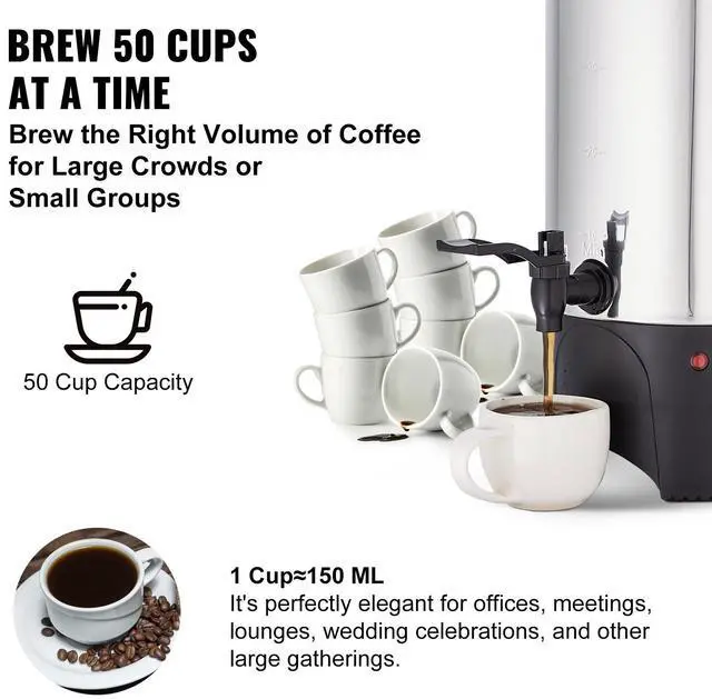 VEVOR Commercial Coffee Urn 50 Cup Stainless Steel Coffee Dispenser Fast Brew