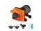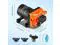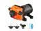 The RV water pump comes with two 1/2" hose adapters for easy connection to the inlet and outlet. It works with a DC power supply, so there is no need to carry the battery.