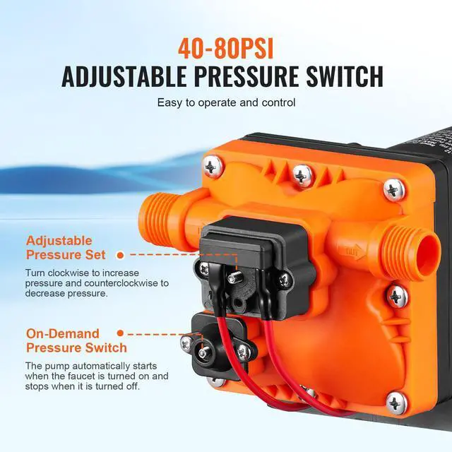 VEVOR 12V Water Pressure Diaphragm Pump Self-Priming Pump 55 PSI 3.5 GPM Boat RV