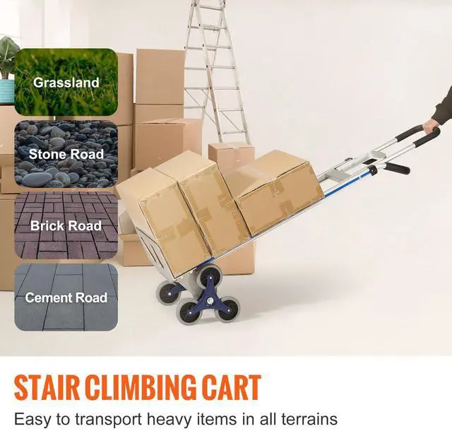 Tray Size: 17.8 x 8.9 inch / 45.3 x 22.7 cm,Load Capacity on Ground: 550 lbs / 250 kg,Load Capacity on Stairs: 330 lbs / 150 kg,Climbing Wheels Diameter: 5 inch / 12.4 cm,Surface Treatment: Powder Coated,Product Weight: 19.4 lbs / 8.8 kg,Material: Aluminum Alloy+Carbon Steel,Product Dimensions: 59.8 x 18.1 x 20.3 inch / 152 x 46 x 51.5 cm