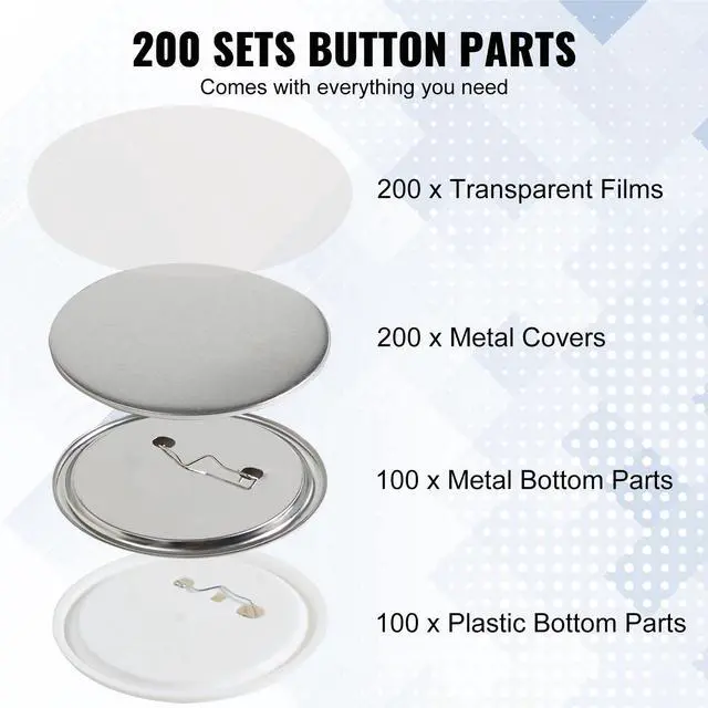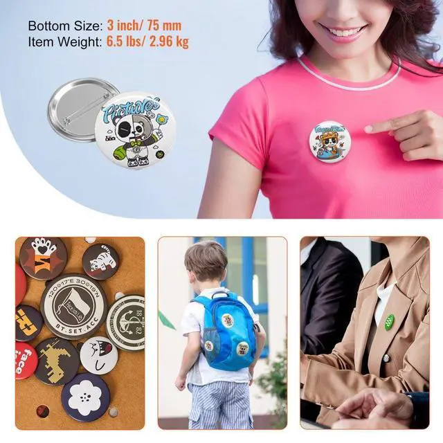 VEVOR 3" 75mm Button Badge Parts Supplies for Button Maker Machine 200 Sets