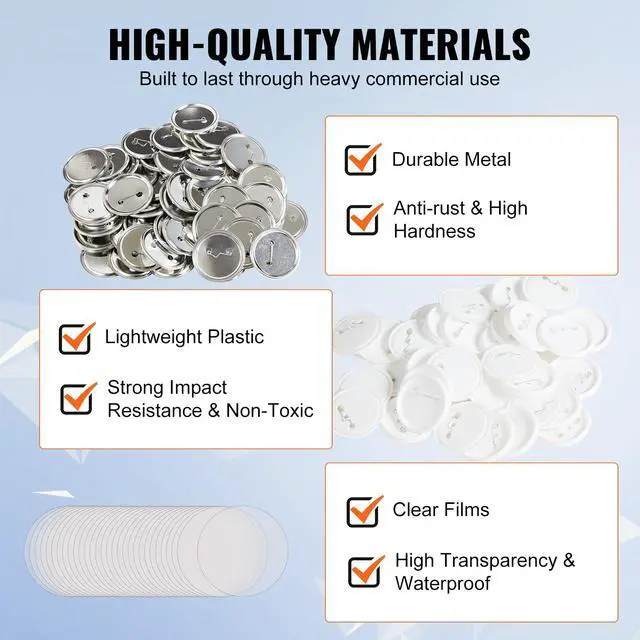 VEVOR 2.25" 58mm Button Badge Parts Supplies for Button Maker Machine 500 Sets