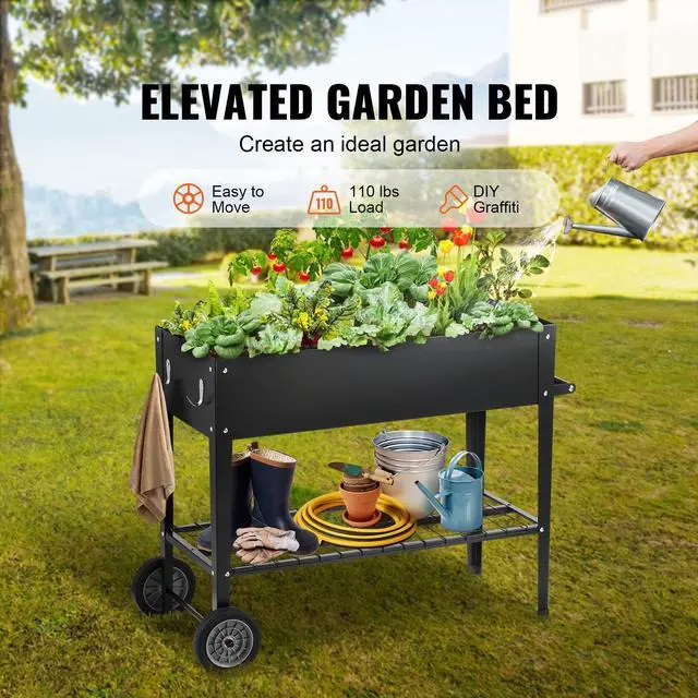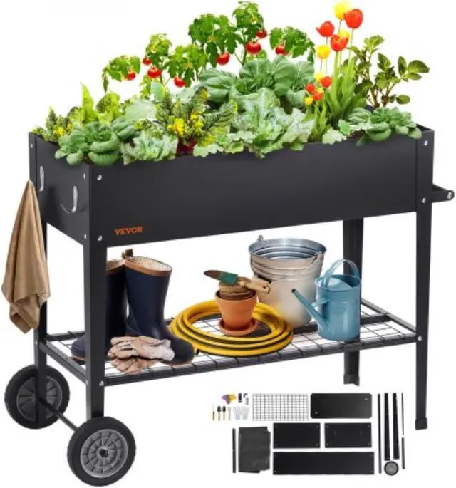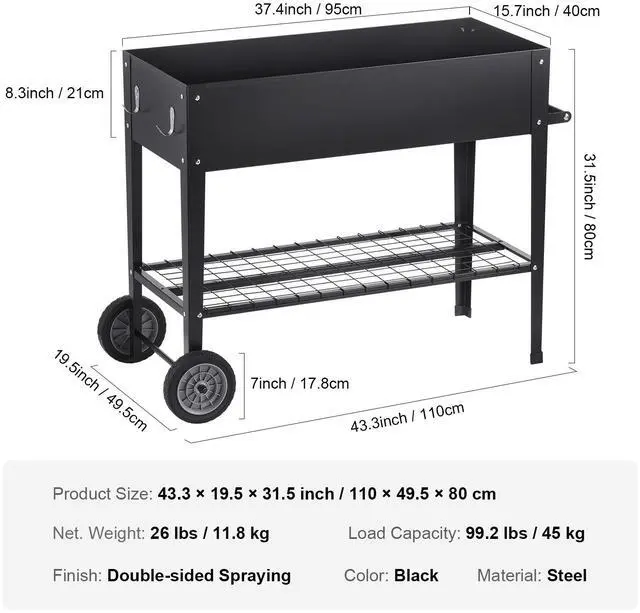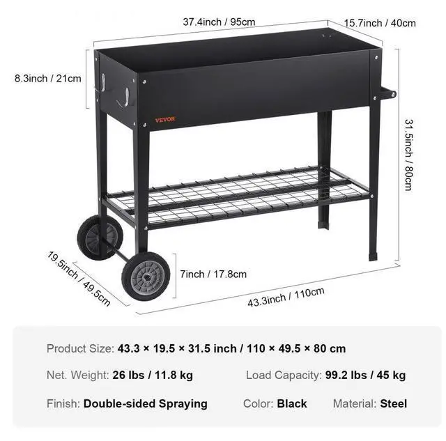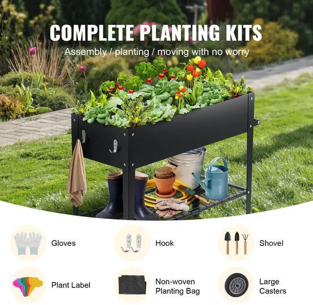 VEVOR Raised Garden Bed, 42.5 x 19.5 x 31.5 inch Galvanized Metal Planter Box, Elevated Outdoor Planting Boxes with Legs, for Growing Flowers/Vegetables/Herbs in Backyard/Garden/Patio/Balcony, Black