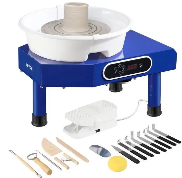 VEVOR Pottery Wheel, 10in Ceramic Wheel Forming Machine, Adjustable 0-300RPM Speed Manual LCD Panel, Foot Pedal ABS Detachable Basin, Sculpting Tool Apron Accessory Kit for Work Art Craft DIY