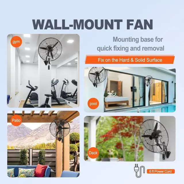 VEVOR Wall-Mount Misting Fan, 30 Inch, 3-speed High Velocity Max. 9500 CFM, Waterproof Oscillating Industrial Wall Fan, Commercial or Residential for Warehouse, Greenhouse, Workshop, Black, ETL Listed