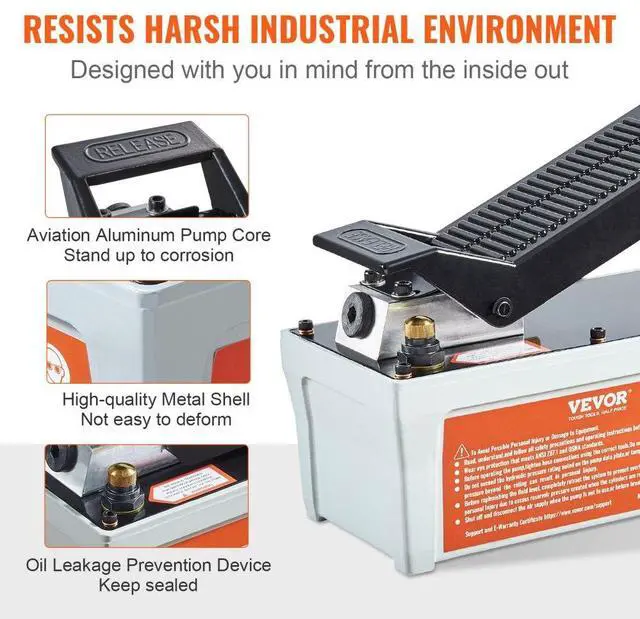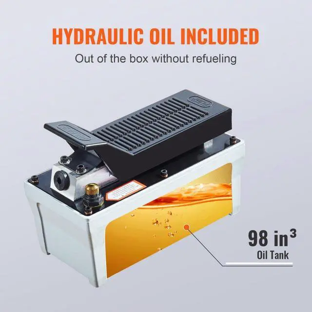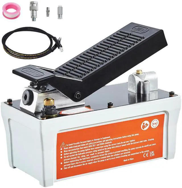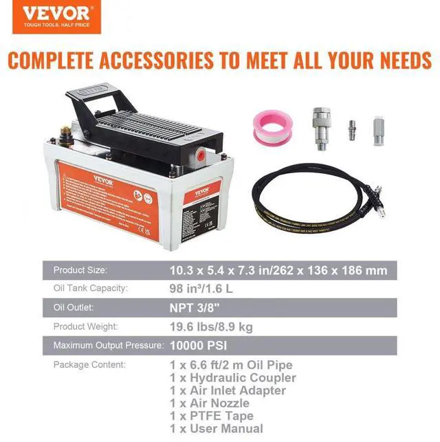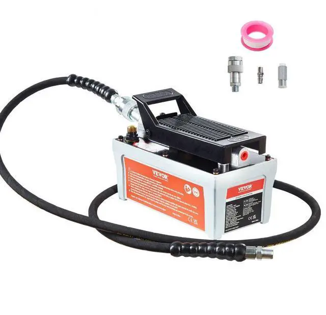 VEVOR Air Hydraulic Pump, 10,000 PSI 1/2 Gal Reservoir, NPT 3/8" Oil Outlet, NPT 1/4" Inlet, 6.6 ft Pipe, Foot Actuated Hydraulic Pump Air Treadle for Auto Body Frame Machines and Pulling Post, Gray