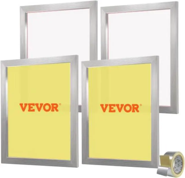 VEVOR Screen Printing Kit, 4 Pieces Aluminum Silk Screen Printing Frames, 20x24inch Silk Screen Printing Frame with 355 Count Mesh, High Tension Nylon Mesh and Sealing Tape for T-shirts DIY Printing