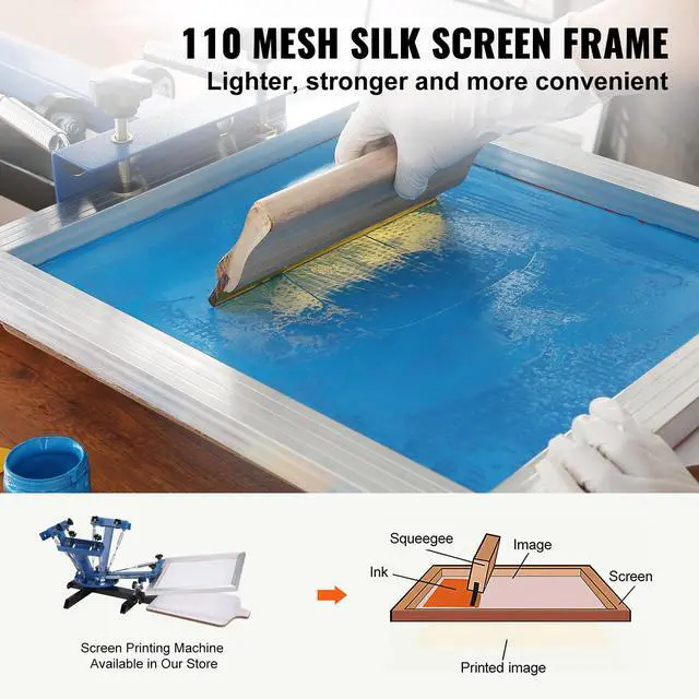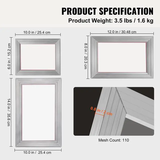 • VEVOR Screen Printing Kit, 3 Pieces Aluminum Silk Screen Printing Frames 6x10/8x12/10x14inch 110 Count Mesh, 5 Glitters and Screen Printing Squeegees and Transparency Films for T-shirts DIY Printing