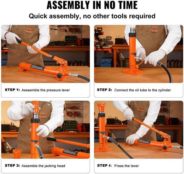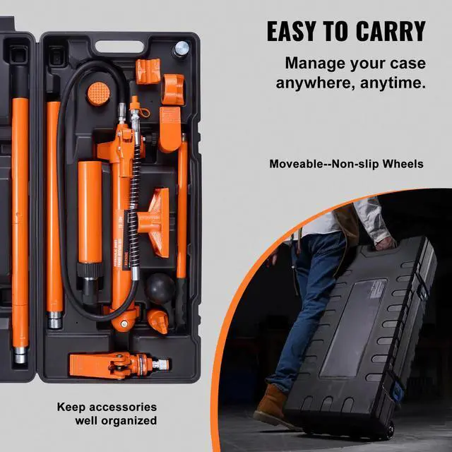 VEVOR 10 Ton Porta Power Kit, Hydraulic Ram with Pump, Car Jack with 4.6 ft/1.4 m Oil Hose, Bent Frame Repair Tool with Storage Case for Automotive, Garage, Heavy Equipment, Mechanic (22046 LBS)