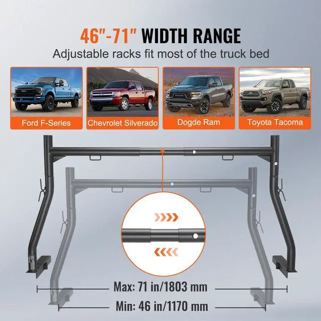 Width Range: 46"-71"/1170-1803 mm,Quantity: 2 PCS,Material: Alloy Steel,Height: 31 in/787 mm,Loading Capacity: 800 lbs/363 kg,Mounting Type: J-bolt,Item Weight: 48.5 lbs/22 kg,Tube Diameter: 2 in/50 mm