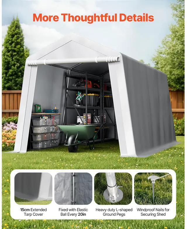 VEVOR Portable Shed Outdoor Storage Shelter, 8 x 14 x 7.6 ft Heavy Duty All-Season Instant Storage Tent Tarp Sheds with Roll-up Zipper Door and Ventilated Windows For Motorcycle, Bike, Garden Tools