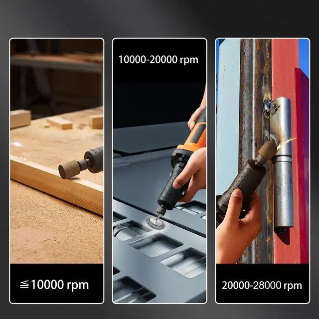 Adjustable Speed: 6 Levels Setting,Noise Level: 90dB,Brush Motor: 820W,Cord Length: 5.9 ft (1.8 m),No load Current: 2.55A max,Voltage: 120V/60Hz,No-load Speed: 7000-30000 RPM,Rated Current: 7A,Protection Grade: IP20,Weight: 4.2 lbs / 1.9 kg,Replaceable Collects: 1/4" / 1/8"