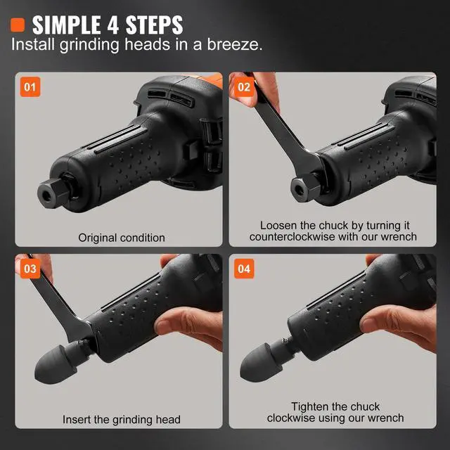VEVOR Die Grinder, 1/4" Collet Variable Speed (7000-30000RPM), Heavy Duty Electric, Ergonomic Grip for Rust Removal, Grinding, Cutting, Polishing, Welding Repair, Deburring, with 1/4" & 1/8" Collets