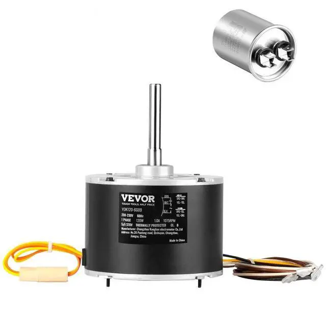 VEVOR Condenser Fan Motor OGD1016, 1/6 HP 208-230V Condenser Fan Motor 1075RPM, OEM Standard Upgraded Replacement Condenser Motor Reversible Rotating, Explosion-proof CBB65 5F/370V Capacitor