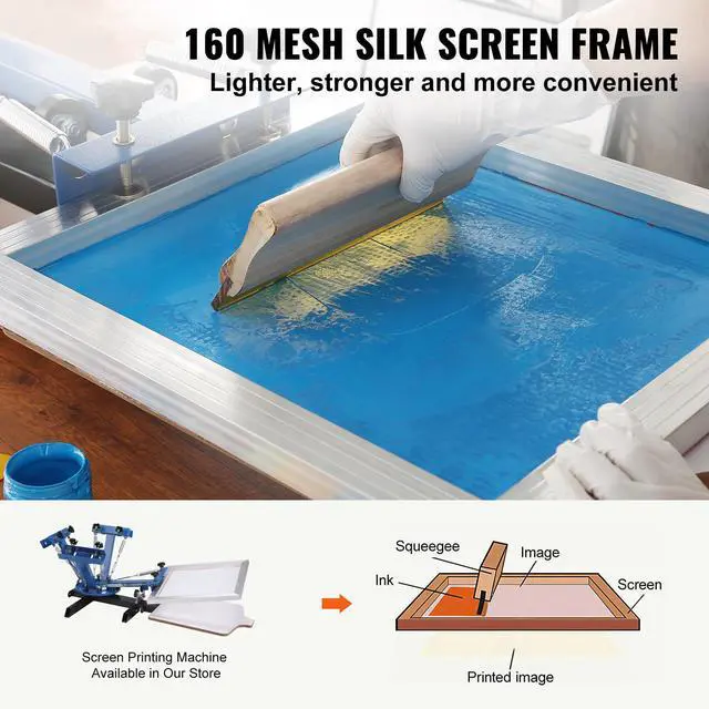 Number of Silk Screen Frames: 6,Mesh Material: Polyester,Frame Thickness: 1 in / 2.5 cm,Mesh Count: 160,Frame Material: Aluminum Alloy,Net Weight: 7.7 lbs / 3.5 kg,Frame Size: 20 x 24 in / 50.8 x 61 cm,Package Size: 24.4 x 20.4 x 6.4 in / 62 x 52 x 16.5 cm