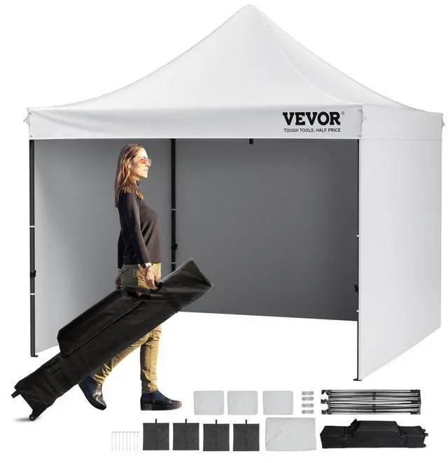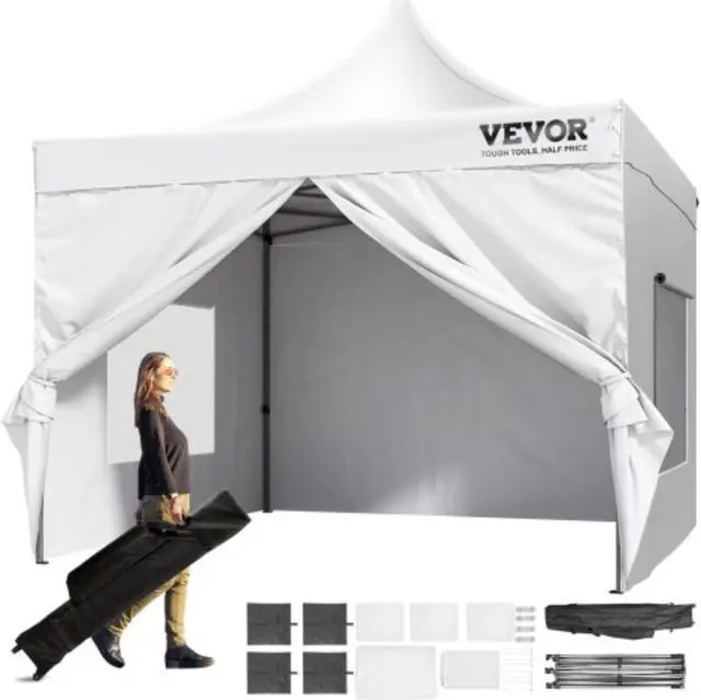 VEVOR 10x10 FT Pop up Canopy with Removable Sidewalls, Instant Canopies Portable Gazebo & Wheeled Bag, UV Resistant Waterproof, Enclosed Canopy Tent for Outdoor Events, Patio, Backyard, Party, Camping