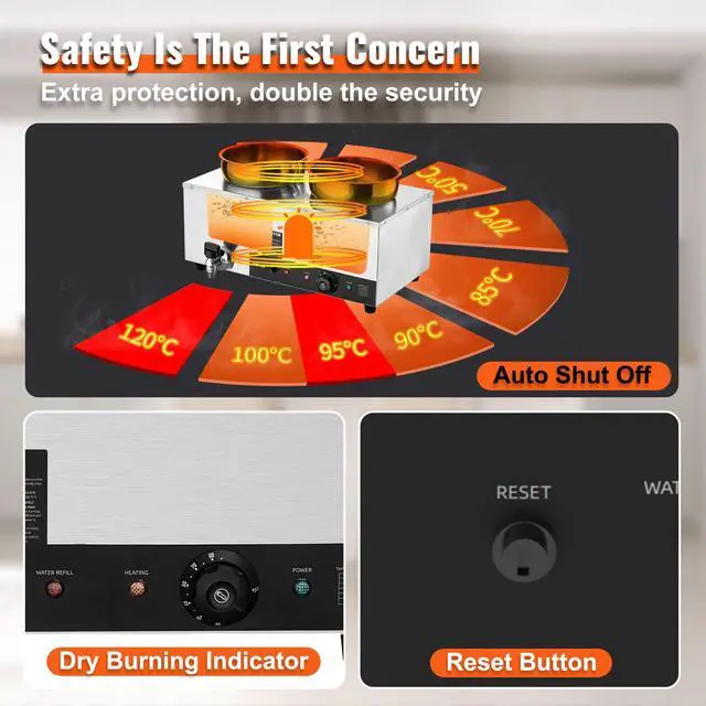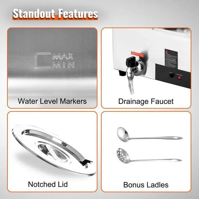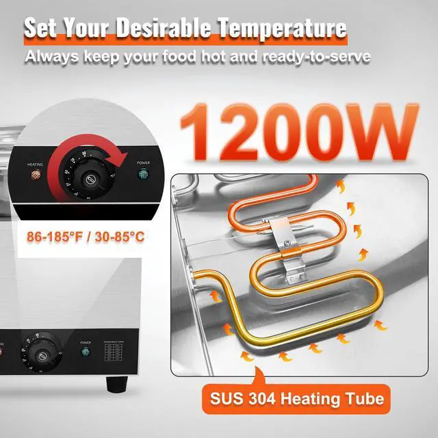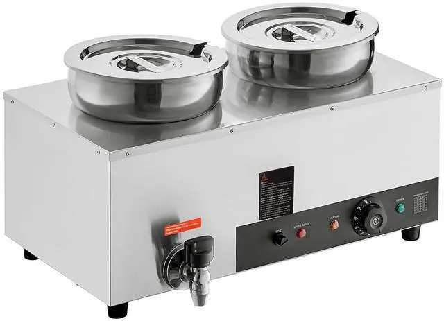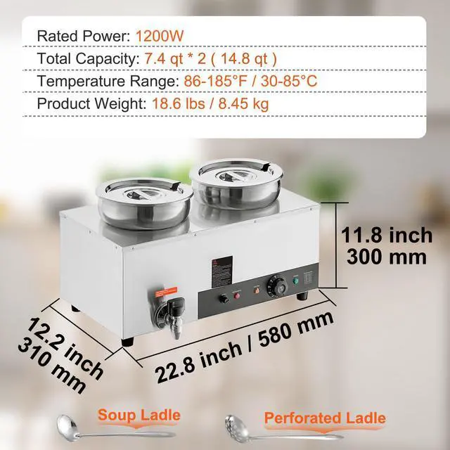 VEVOR Electric Soup Warmer, Dual 7.4QT Stainless Steel Round Pot 86~185F Adjustable Temp, 1200W Commercial Bain Marie with Anti-dry Burn and Reset Button, Soup Station for Restaurant, Buffet, Silver