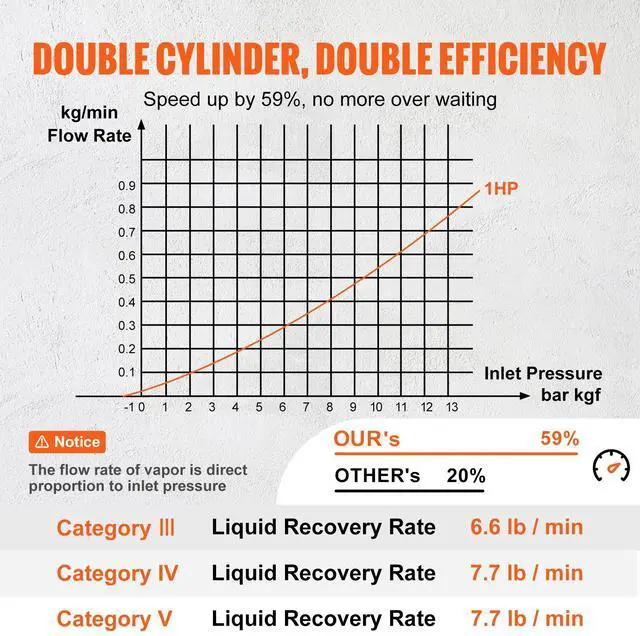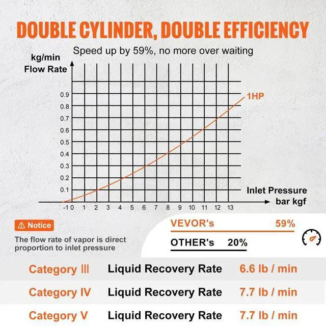 VEVOR 1 HP Refrigerant Recovery Machine - Dual Cylinder Portable AC Recovery Machine with High Pressure Protection 120V 60Hz Recovery Machine HVAC for Vapor Liquid Refrigerant, Car Air Conditioning