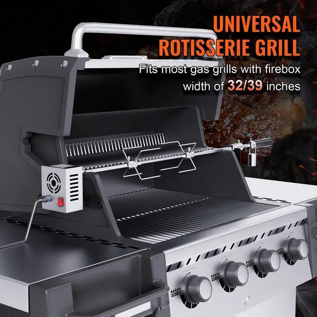 VEVOR Universal Grill Rotisserie Kit for Grills, Electric BBQ Grill with 110V 9W Motor, Stainless Steel Automatic Grilling Kit, Heavy Duty 32"/39" Hexagon Spit Rod, 26 lbs Capacity Grill Attachment