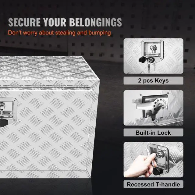 VEVOR Underbody Truck Box, 30"14"16" Pickup Storage Box, Heavy Duty Aluminum Diamond Plate Tool Box with Lock and Keys, Waterproof Trailer Storage Box with T-Handle Latch for Truck, Van, Trailer