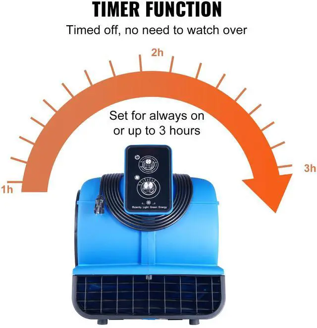 VEVOR Floor Blower, 1/2 HP, 2600 CFM Air Mover for Drying and Cooling, Portable Carpet Dryer Fan with 4 Blowing Angles and Time Function, for Janitorial, Home, Commercial, Industrail Use, ETL Listed