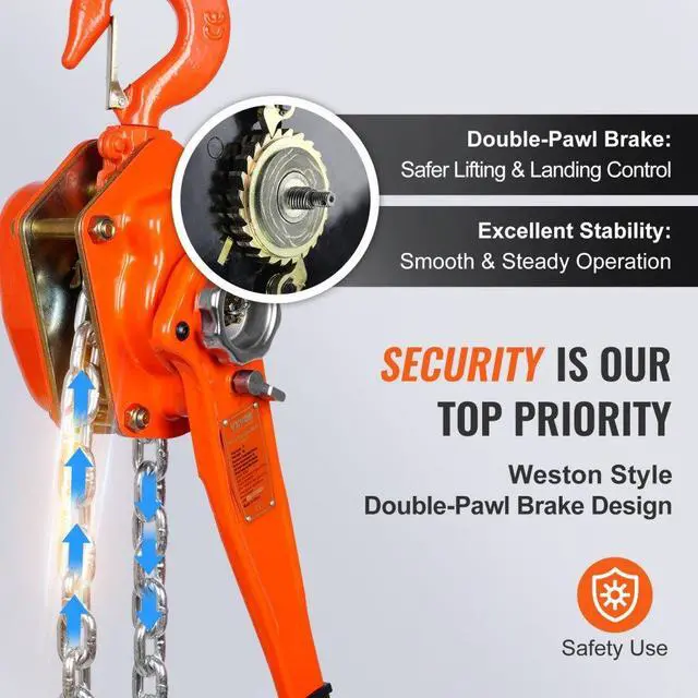 VEVOR Manual Lever Chain Hoist, 3 Ton 6600 lbs Capacity 10 FT Come Along, G80 Galvanized Carbon Steel with Weston Double-Pawl Brake, Auto Chain Leading & 360 Rotation Hook, for Garage Factory Dock