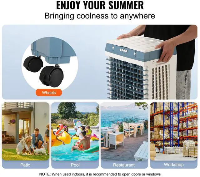 VEVOR Evaporative Air Cooler, 1400 CFM, 84 Oscillating Swamp Cooler with 3 Speeds Adjustable Control, 5 Gal Portable Air Cooler for 550 Sq.ft, Indoor/Outdoor Use, FCC Listed