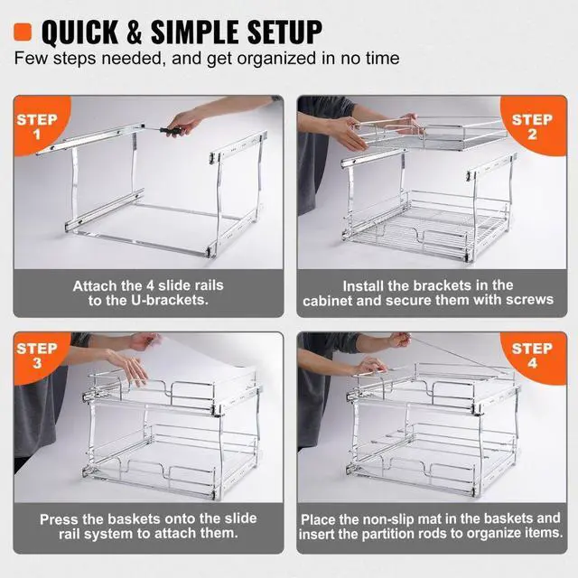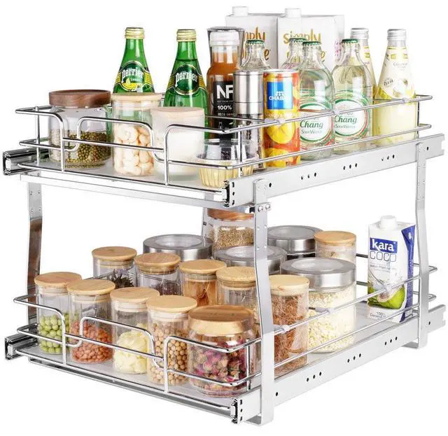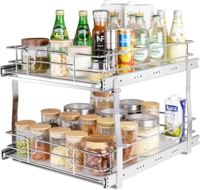 VEVOR 2 Tier 16"W x 21"D Pull Out Cabinet Organizer, Heavy Duty Slide Out Pantry Shelves, Chrome-Plated Steel Roll Out Drawers, Sliding Drawer Storage for Inside Kitchen Cabinet, Bathroom, Under Sink