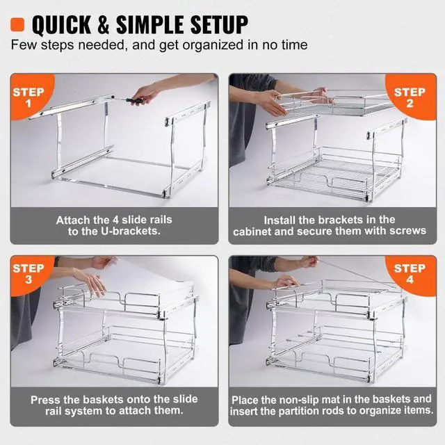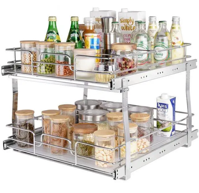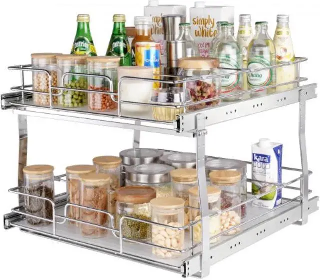 VEVOR 2 Tier 19"W x 20"D Pull Out Cabinet Organizer, Heavy Duty Slide Out Pantry Shelves, Chrome-Plated Steel Roll Out Drawers, Sliding Drawer Storage for Inside Kitchen Cabinet, Bathroom, Under Sink