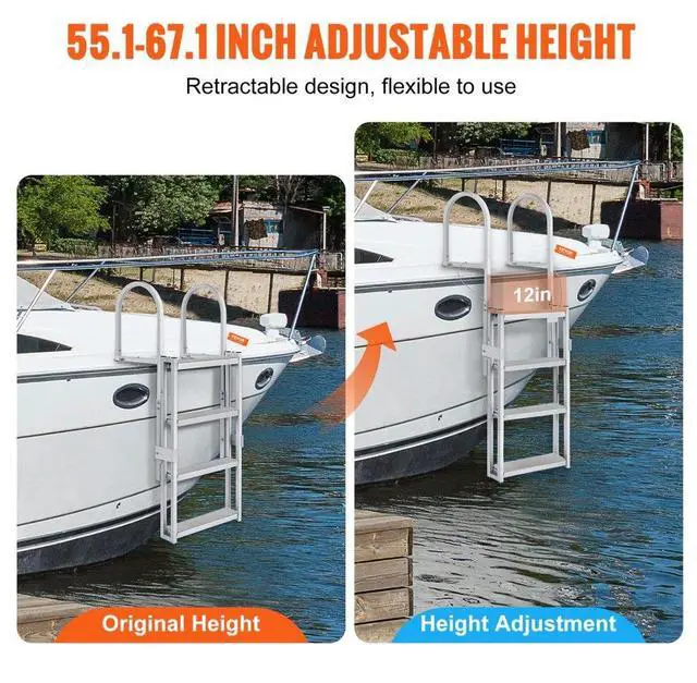 VEVOR Dock Ladder, Retractable 4 Steps, 350 lbs Load Capacity, Aluminum Alloy Pontoon Boat Ladder with 55.1''-67.1'' Adjustable Height, 4'' Wide Step & Rubber Mat, for Ship/Lake/Pool/Marine Boarding