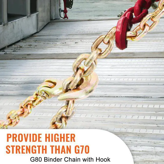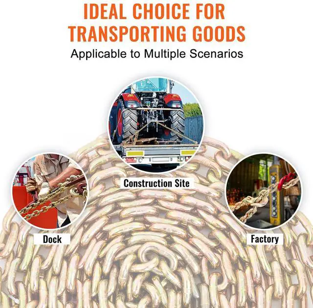 VEVOR Transport Binder Chain, 4900 lbs Working Load Limit, 5/16'' x 20' G80 Tow Chain Tie Down with Grab Hooks, DOT Certified, Galvanized Coating Manganese Steel for Dock Factory Construction Site