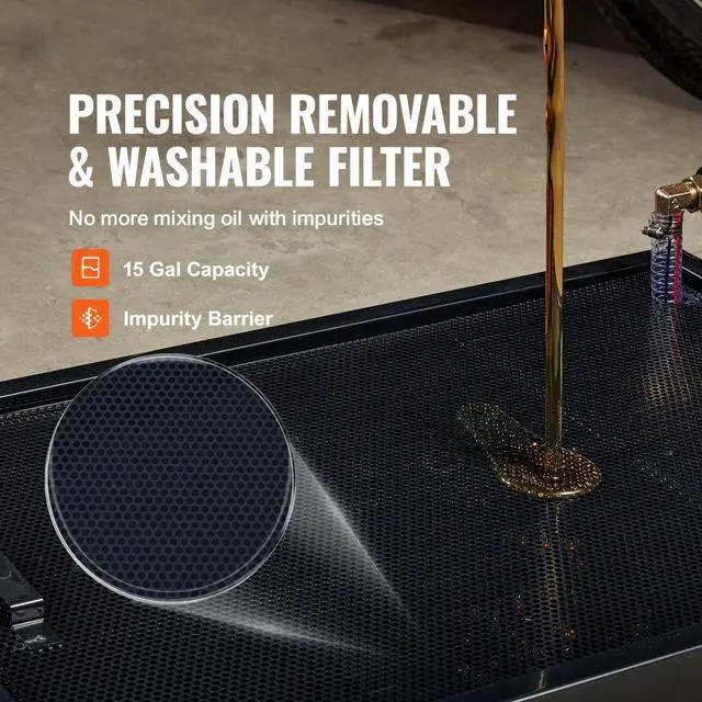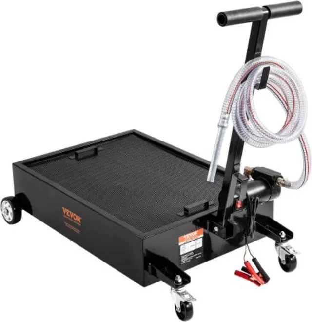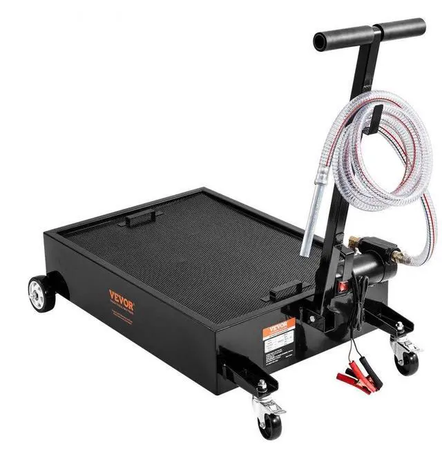 • VEVOR Low Profile Oil Drain Pan, 15 Gallon Oil Drain Pan with Pump, Oil Change Pan with 180W Electric Pump, 8.2ft Hose & Folding Handle, Rolling Oil Drain Cart for Trucks, Buses, RVs