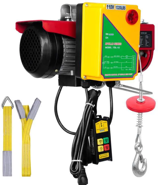 • VEVOR Electric Hoist, 1320 lbs Lifting Capacity, 1150W 110V Electric Steel Wire Winch with Wireless Remote Control, 40ft Single Cable Lifting Height & Pure Copper Motor, for Garage Warehouse Factory