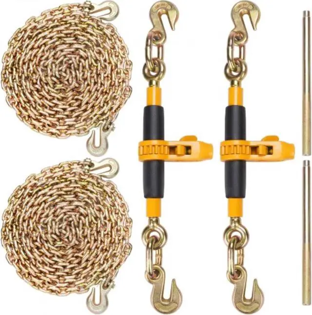 • VEVOR Ratchet Chain Binder, 5/16"-3/8" Heavy Duty Load Binders, with G80 Chains 7100 lbs Secure Load Limit, Labor-saving Anti-skid Handle, Tie Down Hauling Chain Binders for Flatbed Truck Trailer, 2 P