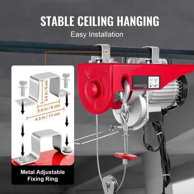 VEVOR Electric Hoist, 2200 lbs Lifting Capacity, 1600W 110V Electric Steel Wire Winch with Wireless Remote Control, 40ft Single Cable Lifting Height & Pure Copper Motor, for Garage Warehouse Factory