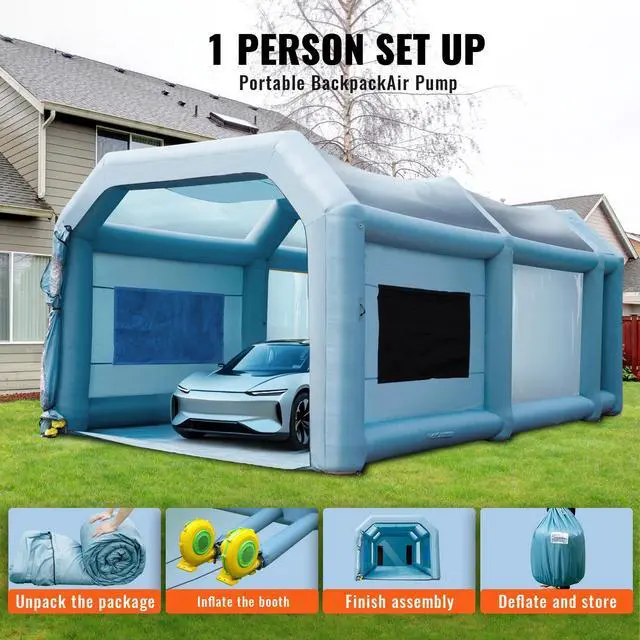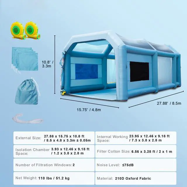 VEVOR Inflatable Paint Booth, 28x16x11ft Inflatable Spray Booth, High Powerful 750W+950W Blowers Spray Booth Tent, Car Paint Tent Air Filter System for Car Parking Tent Workstation Motorcycle Garage