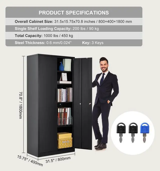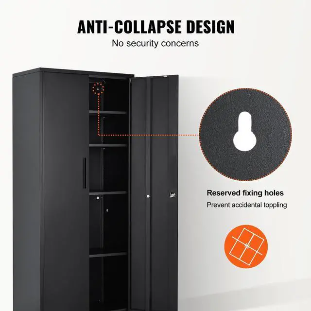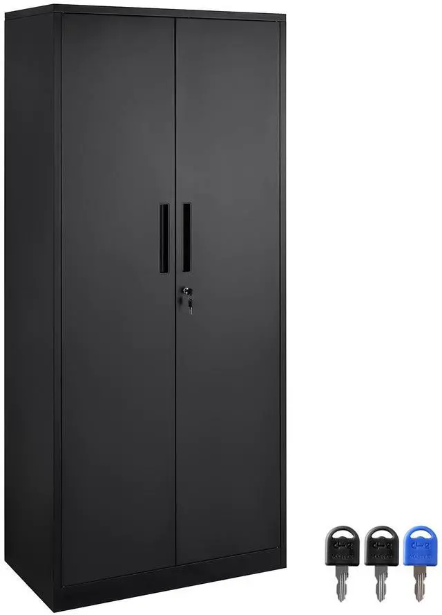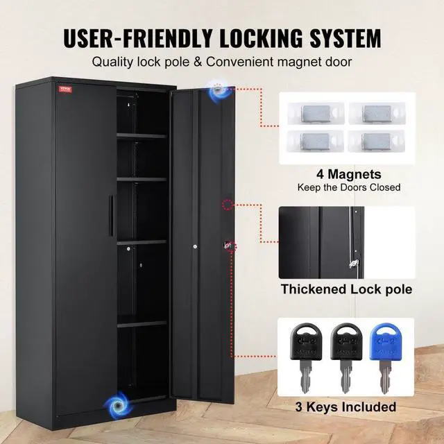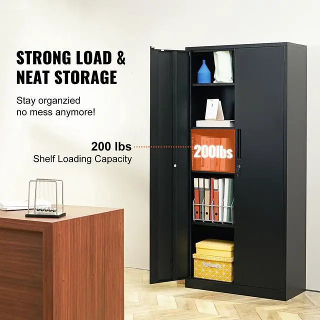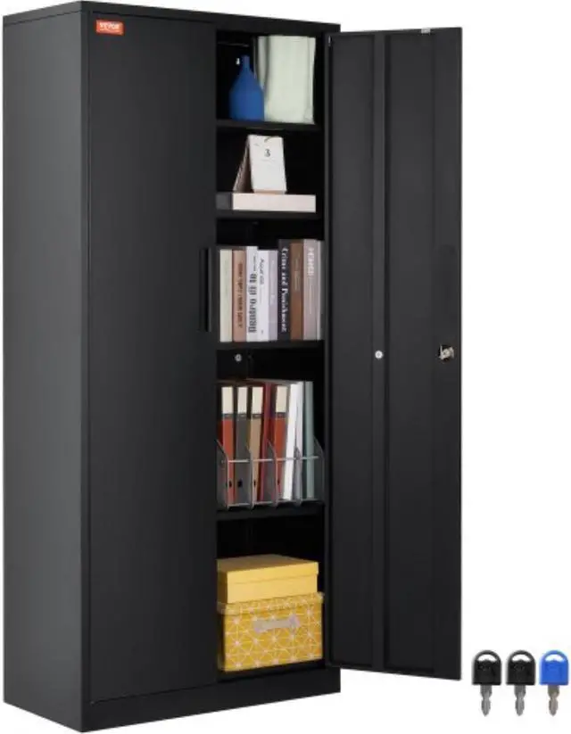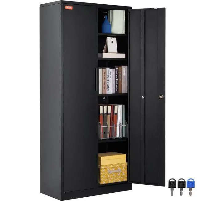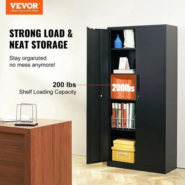 VEVOR Metal Storage Cabinet with 2 Magnetic Doors and 4 Adjustable Shelves, 200 lbs Capacity per Shelf, Locking Steel Storage Cabinet, 71'' Metal Cabinet with 3 Keys, for Office, Garage, Home, Black