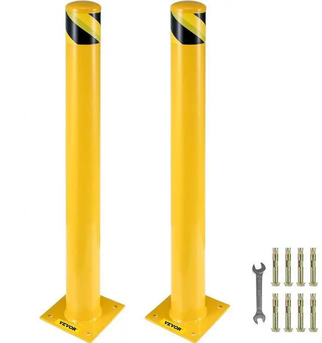 Product Height: 48" / 122 cm,Pipe Thickness: 0.12" / 3 mm,Number: 2 PCS,Base Size: 7.87" x 7.87"/ 20 x 20 cm,Pipe Diameter: 4.5" / 11.4 cm,Color: Black & Yellow,Model: BP-48-4.5,Material: Q235 Steel,Weight: 30.86 lbs / 14.00 kg