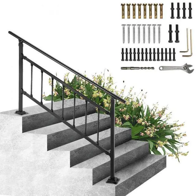 Vevor Iron Handrail Stair Railing Hand Rail Kit 1-4 Steps Outdoor Black W/ Bars