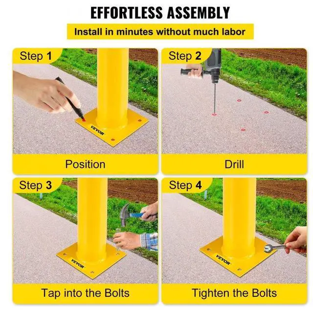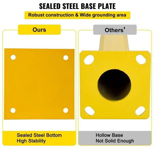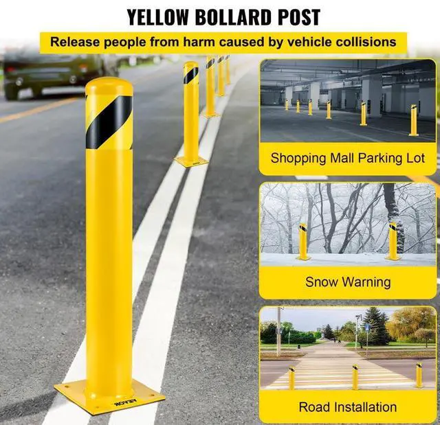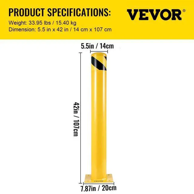 Product Height: 42" / 107 cm,Pipe Thickness: 0.12" / 3 mm,Number: 2 PCS,Base Size: 7.87" x 7.87"/ 20 x 20 cm,Pipe Diameter: 5.5" / 14 cm,Color: Black & Yellow,Model: BP-42-5.5,Material: Q235 Steel,Weight: 33.95 lbs / 15.40 kg