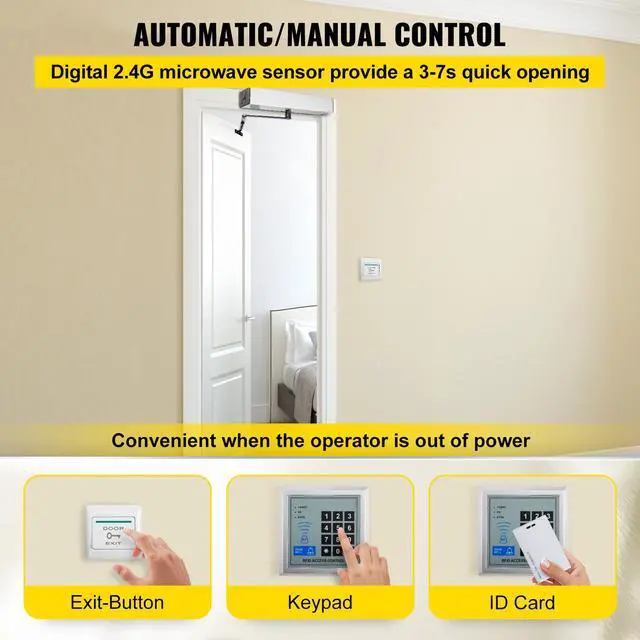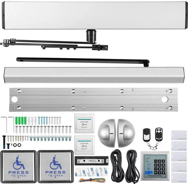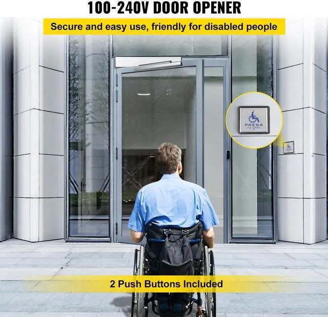 VEVOR Automatic Door Opener, 100-240V for Max.220lbs Doors, Swing Door Operator for Disabilities w/ 2 Wireless Remotes, 2 Exit Buttons, Keypad, 5 ID Cards, 2 Stainless Steel Push Buttons, CE Listed