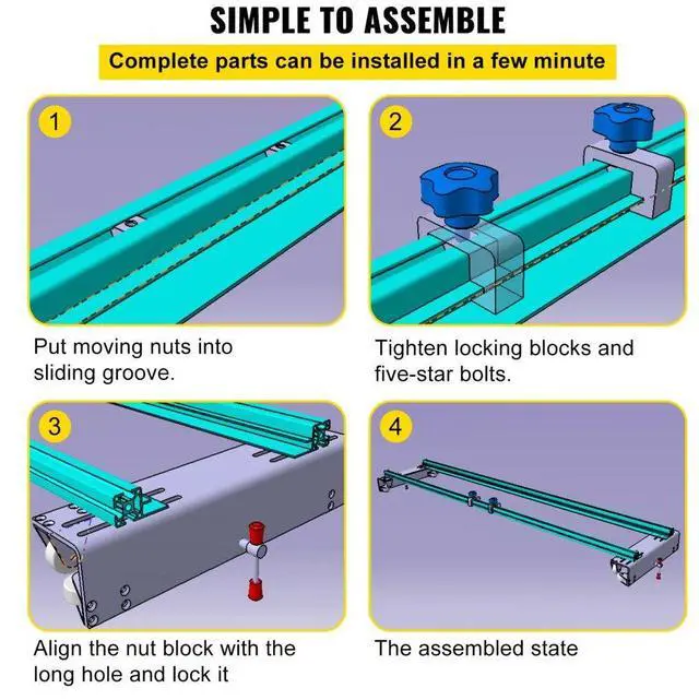 VEVOR Router Sled, 60 inches / 152.4cm Width, Slab Guide Jig for Woodworking with Locking Function, Portable and Easy to Adjust, Trimming Planing Machine for Wood Flattening, Home DIY