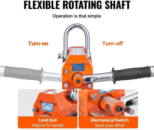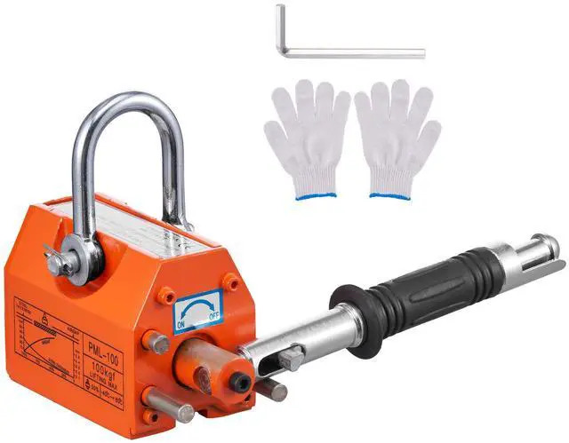 VEVOR Magnetic Lifter, 220 lbs/100 kg Pulling Capacity, 2.5 Safety Factor, Neodymium & Steel, Lifting Magnet with Release, Permanent Lift Magnets, Heavy Duty Magnet for Hoist, Shop Crane, Block, Board