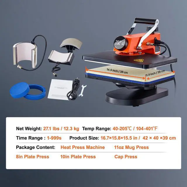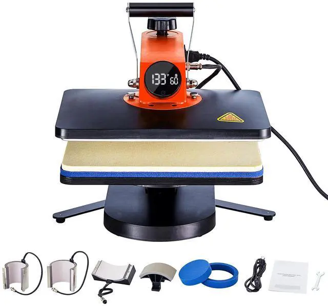 VEVOR 5-in-1 Heat Press Machine, 12" x 15" Fast Heating, 360 Swing Away Digital Sublimation Transfer, T-Shirt Vinyl Transfer Printer for Banners Canvas Bag Shirts Pillow Cups Caps Plates