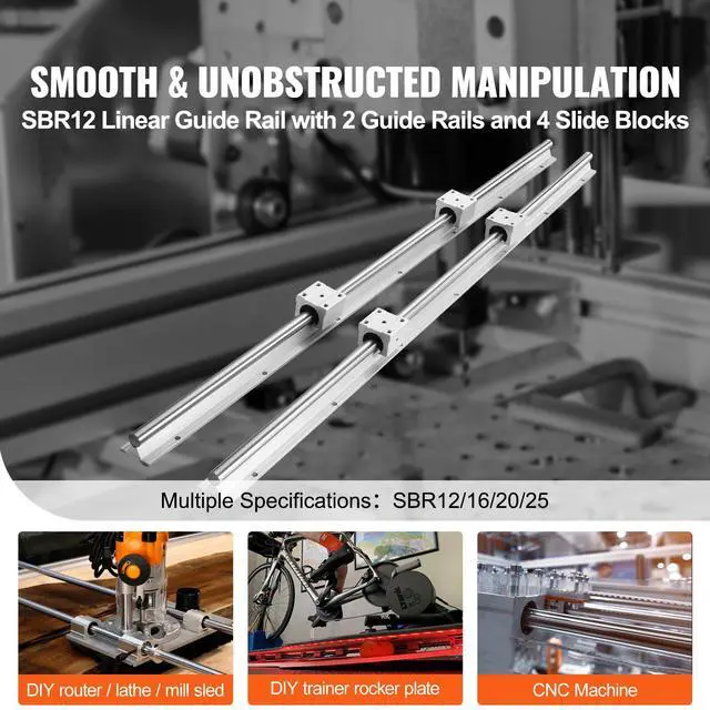 VEVOR Linear Guide Rail Set, SBR12 1000mm, 2 PCS 39.4 in/1000 mm SBR12 Guide Rails and 4 PCS SBR12UU Slide Blocks, Linear Rails and Bearings Kit for Automated Machines DIY Project CNC Router Machines