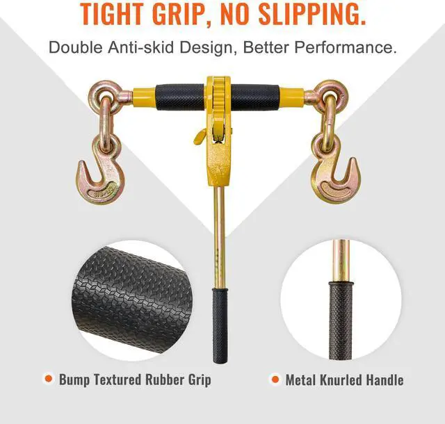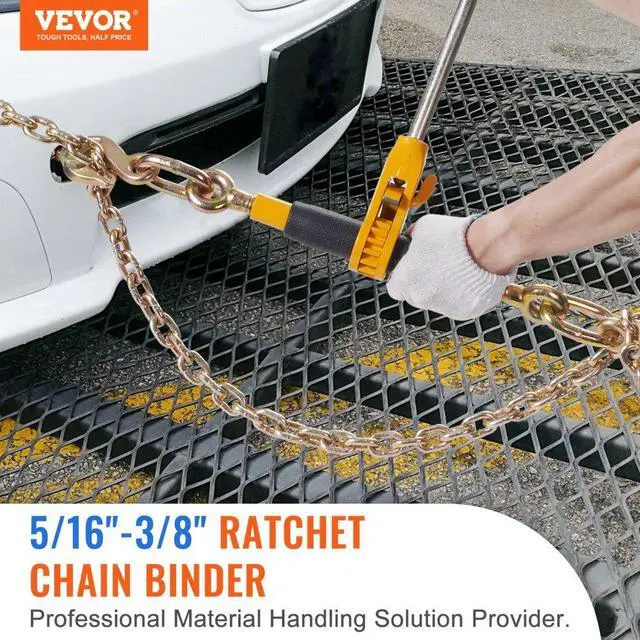 VEVOR Ratchet Chain Binder, 5/16"-3/8" Heavy Duty Load Binders, with G80 Chains 7100 lbs Secure Load Limit, Labor-saving Anti-skid Handle, Tie Down Hauling Chain Binders for Flatbed Truck Trailer, 4 P