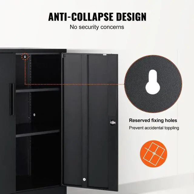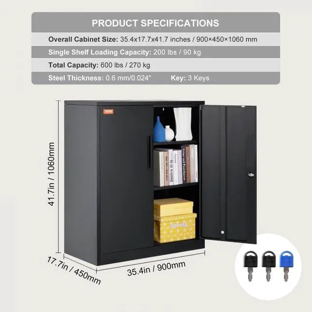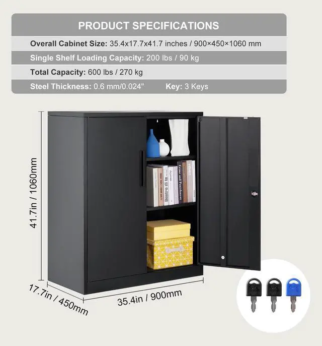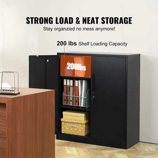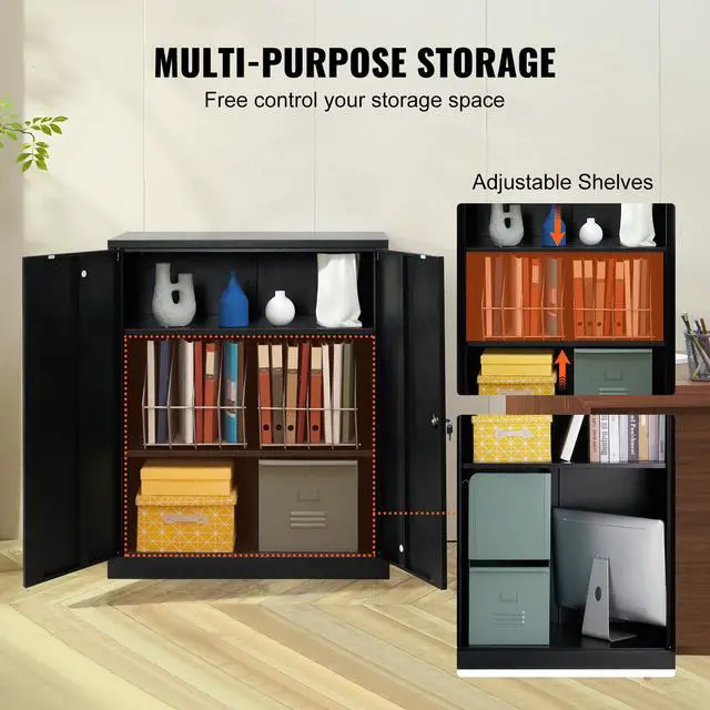 VEVOR Metal Storage Cabinet with 2 Magnetic Doors and 2 Adjustable Shelves, 200 lbs Capacity per Shelf, Locking Steel Storage Cabinet, 42'' Metal Cabinet with 3 Keys, for Home, Office, Garage
