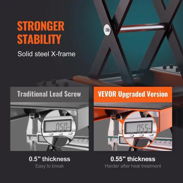 Item Model Number: M110203,Length of Handle: 5.1 inch/130 mm,Max. Capacity: 1100 lbs/0.5 ton,Top Platform Size: 14.6 x 9 inch/370.8 x 228.6 mm,Net Weight: 45.6 lb/20.7 kg,Lifting Range: 4.7-15.4 inch/120-390 mm,Product Size: 14.6 x 9 x 4.7 inch/370.8 x 228.6 x 119.4 mm