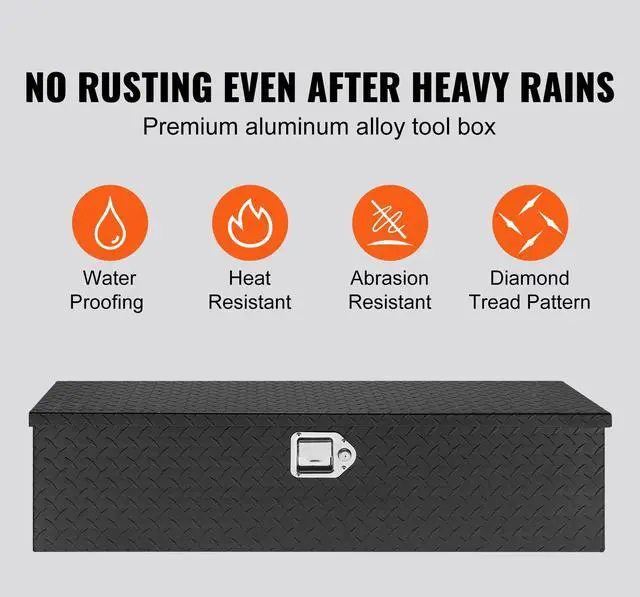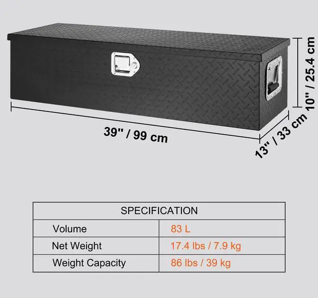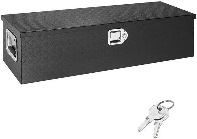 VEVOR Heavy Duty Aluminum Truck Bed Tool Box, Diamond Plate Tool Box with Side Handle and Lock Keys, Storage Tool Box Chest Box Organizer for Pickup, Truck Bed, RV, Trailer, 39"x13"x10", Black