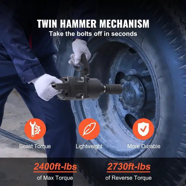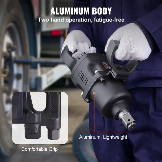 VEVOR 1 Inch Air Impact Wrench, Up to 2730 ft-lbs Reverse Torque Output 1" Pneumatic Impact Gun Lightweight w/ 2 Handles for Heavy Duty Repairs and Maintenance